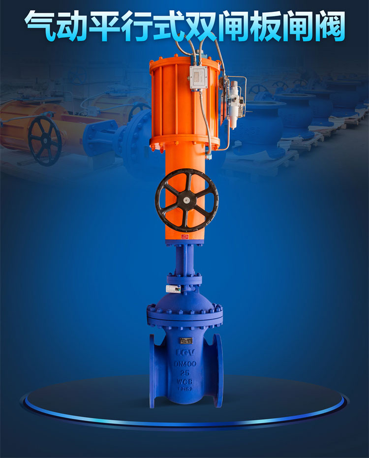 11. 單作(zuò)用彈簧複位氣動平行式雙閘板閘閥,在(zài)斷電或停氣時,可利用氣(qì)缸(gāng)的內(nèi)儲能彈簧的作用使閥門(mén)緊急複(fù)位,使閥門關閉或(huò)開啟起到安全作用。